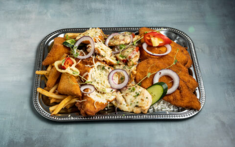 Cordon sertésszelet, Óvári sertésszelet, Mátrai borzaska, Rántott karfiol. Köret: Steak burgonya, rizs....